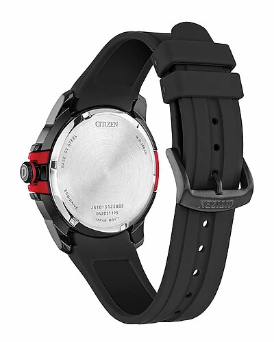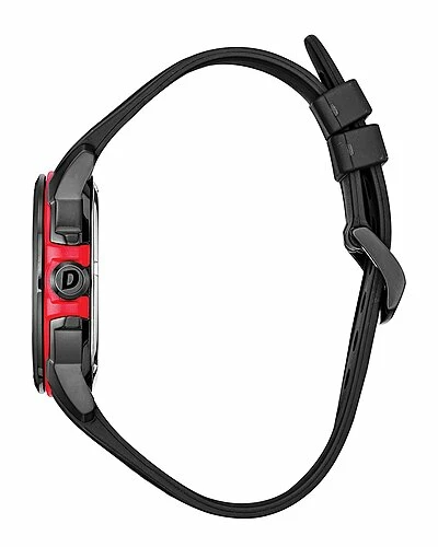 - Black dial with red hands