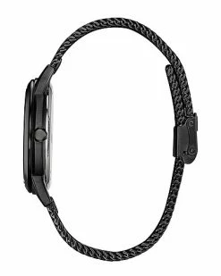 - Black dial with silver-tone hands