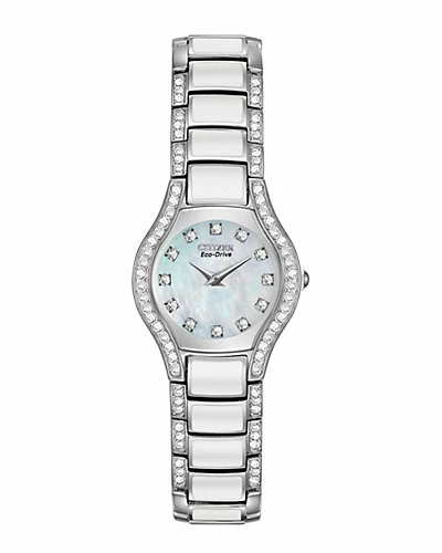 - White stainless steel and resin bracelet encrusted with Swarovski crystals