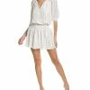 - Annadele Mini Dress in coral with smocked waist and ruffle hem