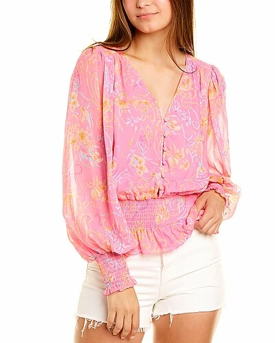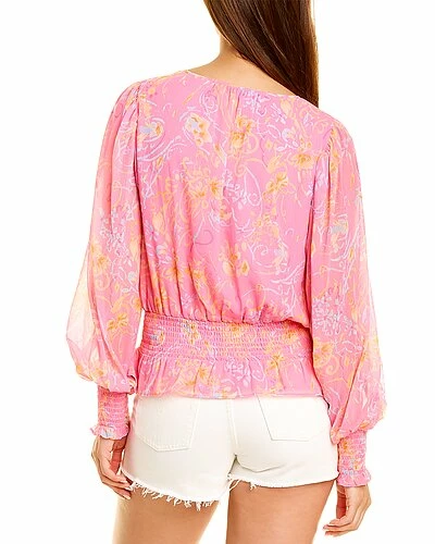 - Brett Top in peony combo with smocked cuffs and hem and balloon sleeves