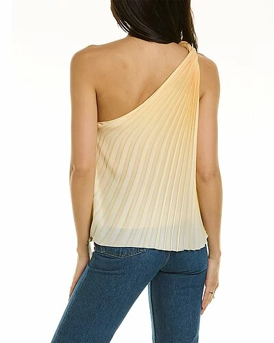 - Carlo Top in daffodil with one-shoulder accordion pleated design and twisted shoulder strap