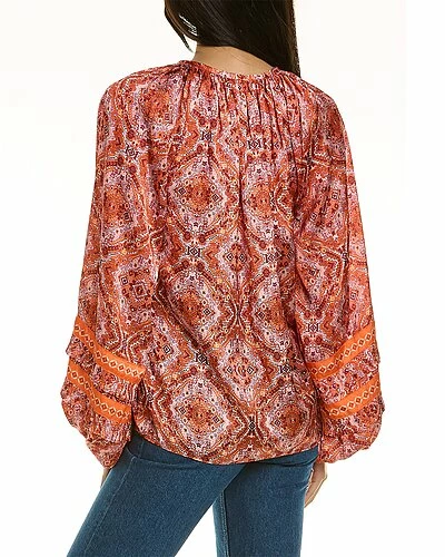 - Dailey Top in zinnia combo with balloon sleeves and embroidered detailing