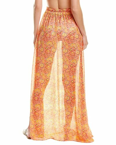 - Darya Maxi Skirt in flamingo combo with elasticized waist, paillette embellished trim and split hem