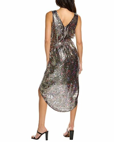 - Eden Silk-Blend Cocktail Dress in black multicolor with metallic jacquard design, surplice bodice, shirred left front, and high-low hem