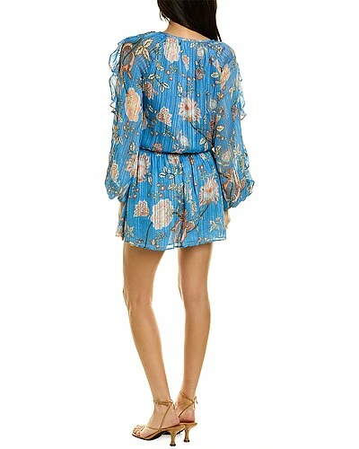 - Hamilton Mini Dress in ocean combo with elasticized waist and ruffle-trim balloon sleeves