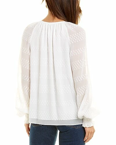- Long Sleeve Colleen Top in white with dropstitch embroidery, raglan sleeves, smocked cuffs, and gauze design