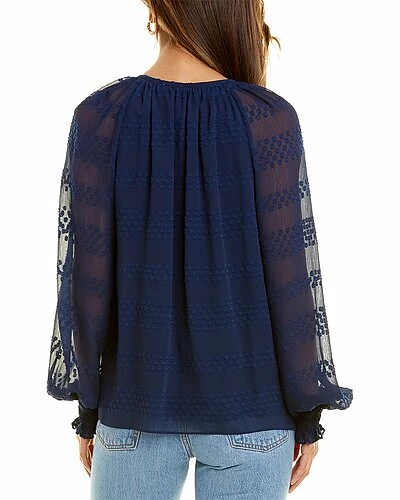 - Long Sleeve Colleen Top in spring navy with dropstitch embroidery, raglan sleeves, smocked cuffs, and gauze design