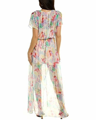 - Marion Maxi Dress in multicolor with wrap silhouette and tie sash at waist