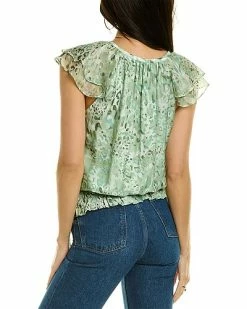 - Miller Silk-Blend Top in julep combo with smocked hem and cap sleeves