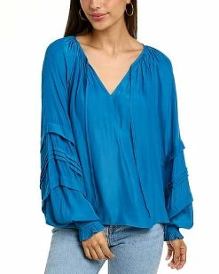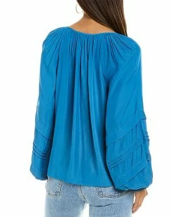 - Naples Top in true blue with blouson sleeves, pleated trim, and smocked cuffs