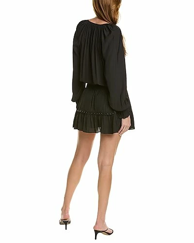 - Nardia Mini Dress in black with lace trim, smocked waist, and ruffle hem