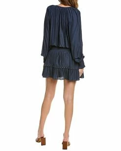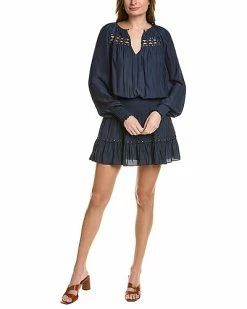 - Nardia Mini Dress in navy with lace trim, smocked waist, and ruffle hem