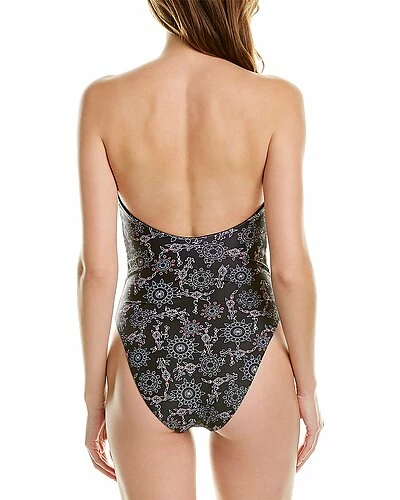 - Posey One-Piece in black combo with strapless design and strappy neckline