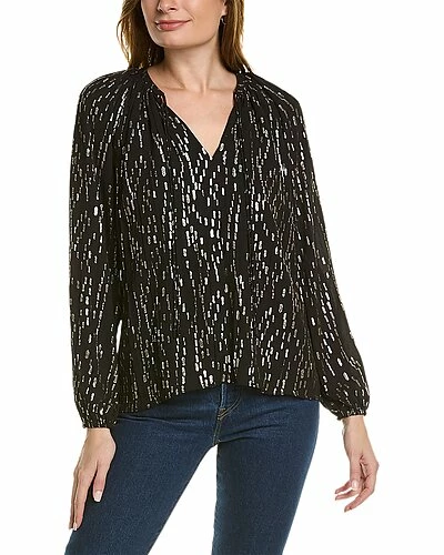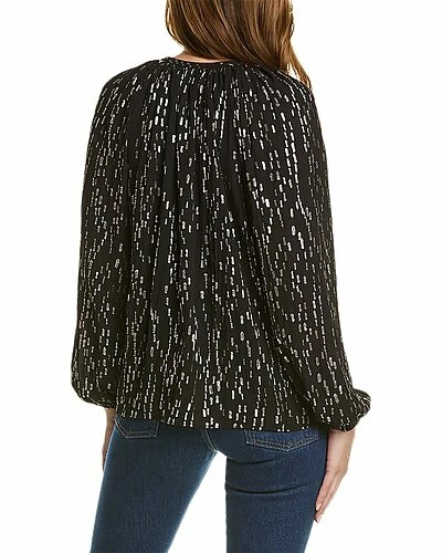 - Wirth Top in black with shirred neckline and elasticized cuffs