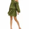 - Zorah Mini Skirt in olive with tiered ruffle design, studded trim, and smocked waistband